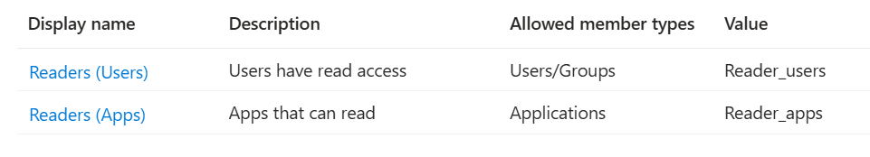 Note 2: You can set the value to what you wish but I prefer to also make it easier to distinguish between user and app roles in code. You might need only user roles right now but apps and requirements evolve over time and at some point you might need a role for apps as well. Using a prefix or suffix to point the member type is a good way to ensure that you don’t end up with something like this: