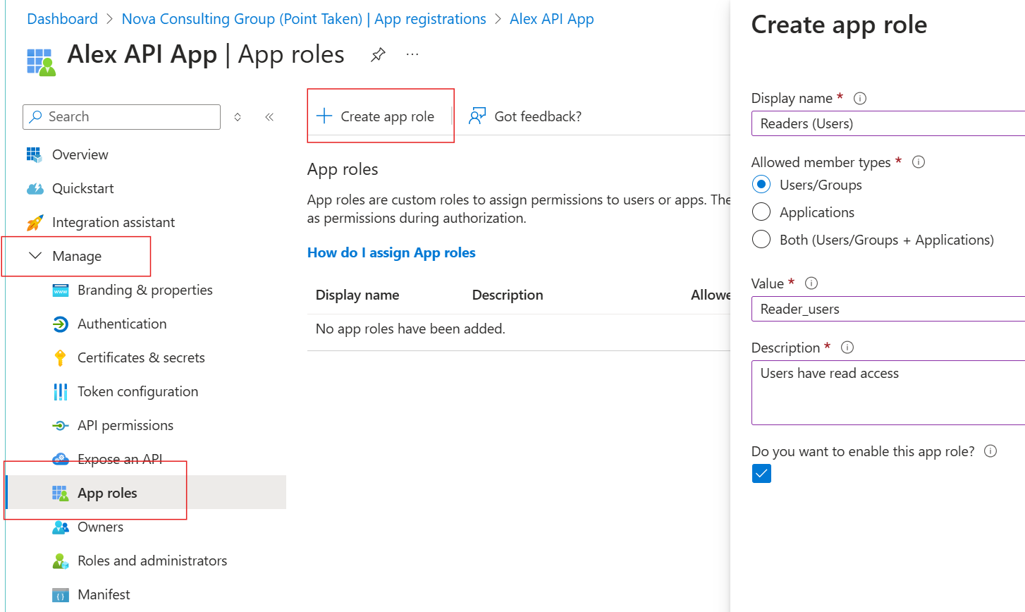 4. Click on Create app role on the top