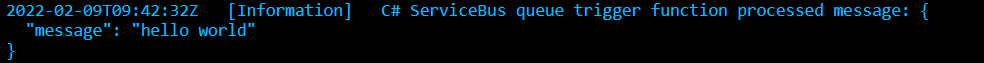 _logger.LogInformation($"C# ServiceBus queue trigger function processed message: {myQueueItem}");